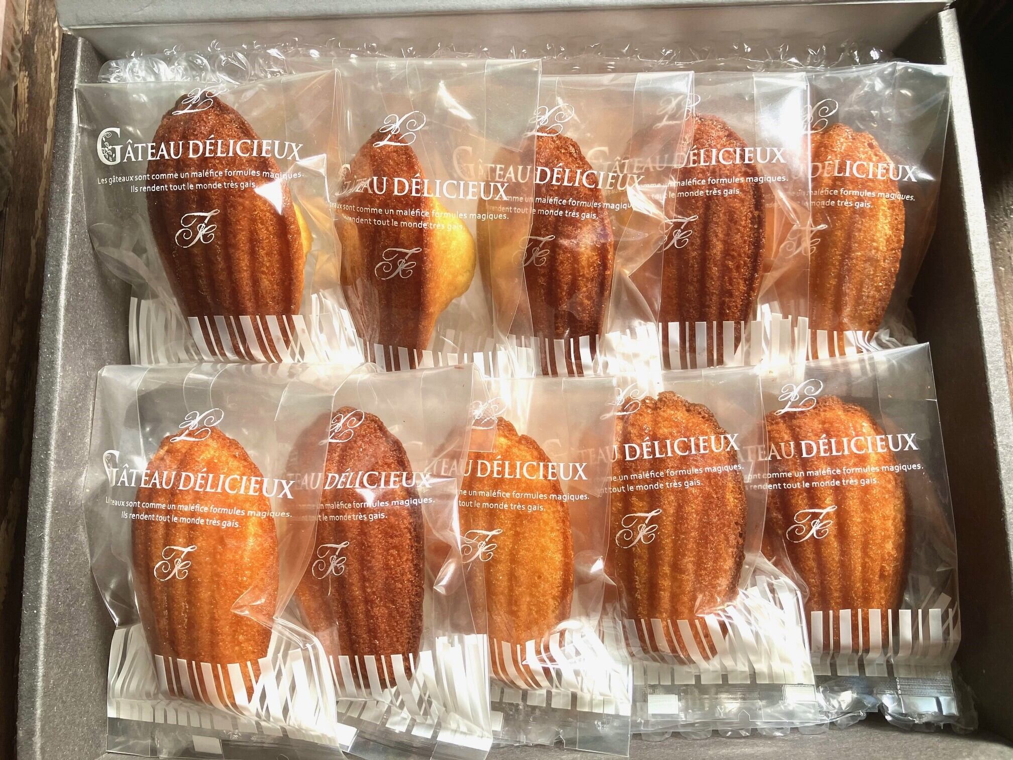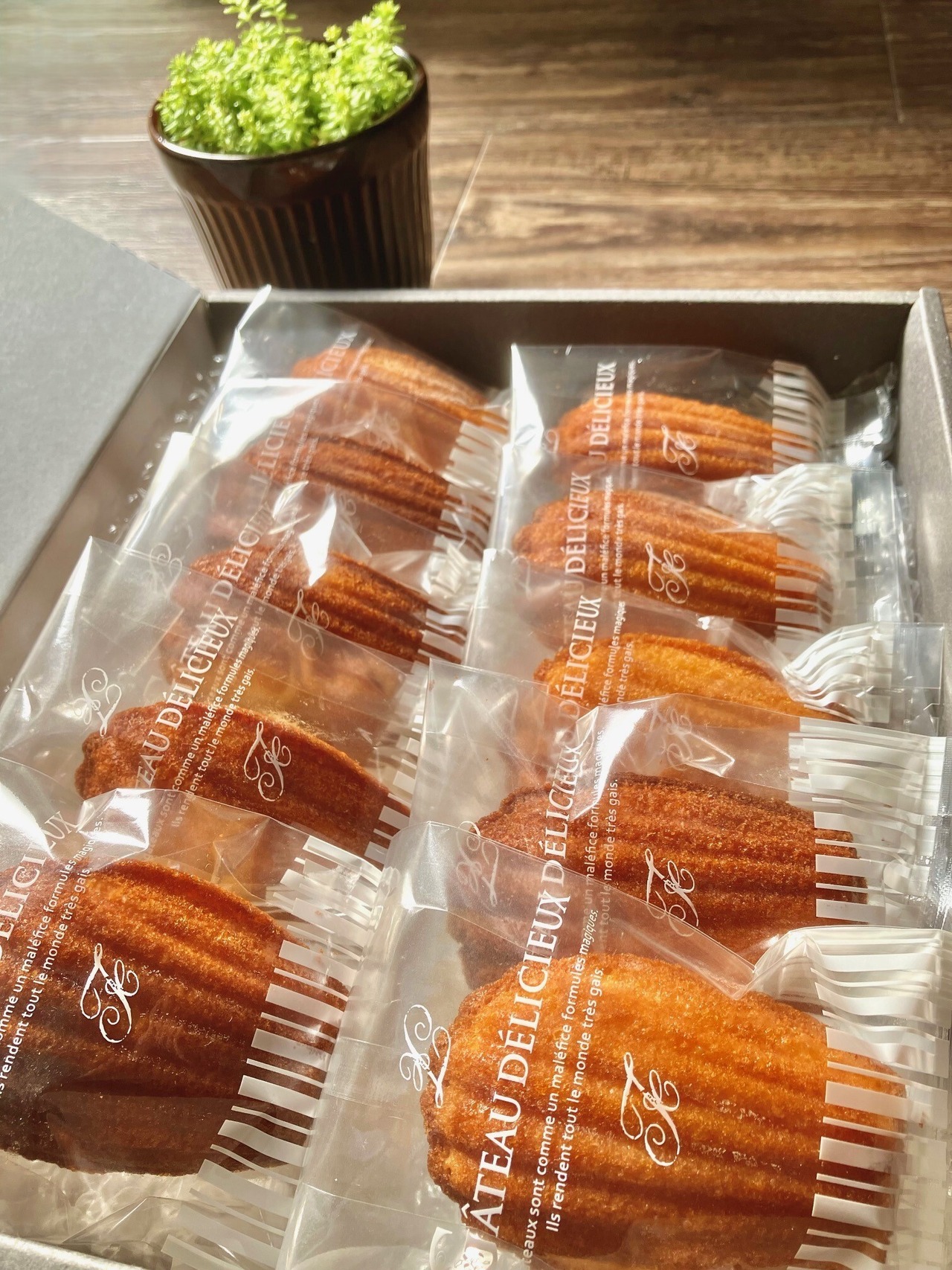 手造りバターをたっぷり使って風味を引き立てた焦がしバターのマドレーヌ。焼き上がり後ラム酒で仕上げました。【10個入り】